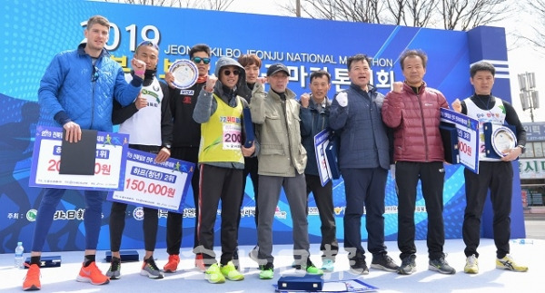 전국 마라톤 동호인들의 축제 ‘2019 전북일보 전주 전국마라톤대회’가 지난 31일 전주와 김제 일원에서 1000여 명이 참가한 가운데 성황리에 열렸다. 전북일보사가 주최하고 전북육상연맹이 주관한 이번 전주 전국마라톤대회는 남·여 각각 5km, 10km, 하프(남자 청년부, 장년부, 여자부) 코스로 나눠 진행됐다. 5인 1조(10km)로 출전하는 단체전도 함께 열려 눈길을 끌었다. 특히 이번 대회는 전북도의 숙원사업이자 ‘새천년 도약’에 어울리는 새만금 국제공항 건설 확정을 기념하기 위해 열려 의미를 더했다. 새 봄을 맞아 한 마음으로 달린 아마추어 마라토너들의 열정을 카메라에 담았다.