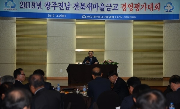 새마을금고중앙회 광주 전남·전북 지역본부는 전남 나주 중흥 골드스파&리조트에서 박차훈 새마을금고중앙회장과 지역 새마을금고 이사장, 수상자 등 180여 명이 참석한 가운데 ‘2019년 광주전남·전북 새마을금고 경영평가대회’를 열었다.