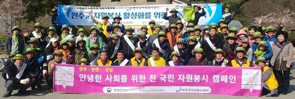 완주군 자원봉사센터(센터장 모삼종)는 지난 6일 구이면 모악산 등산로 입구에서 한국노동조합 총연합회 완주군대표자협의회(회장 최한식)와 자원봉사 업무 협약을 체결하고, 등산로와 천변 등의 환경정화활동을 연중 4회 이상 펼쳐나가기로 했다.