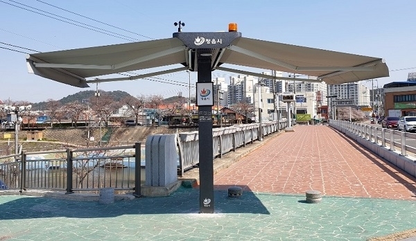 정읍시가 여름철 폭염에 대비하여 시내 주요 도로변과 횡단보도 등 10개소에 스마트 그늘막을 시범 설치했다. 시 안전총괄과에 따르면 스마트 그늘막은 현재 5개소에서 운영 중인 기존의 접이식 그늘막의 단점을 개선했다.