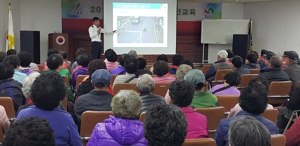 강사로 나선 정기주 교통관리계장은 ‘나의 안전은 내가 지킨다’는 주제로 야간 외출 시 밝은 옷 입기를 당부했다. 또 방어보행 3원칙과 동영상을 활용한 이륜자동차 및 경운기 등 차종별 안전운행 수칙도 설명해 호응을 얻었다.