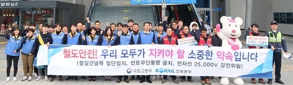 코레일 전북본부(본부장 권혁진)는 11일 익산역을 비롯해 전주역, 정읍역, 남원역 등 도내 주요 역에서 철도교통 안전 캠페인을 대대적으로 실시했다.