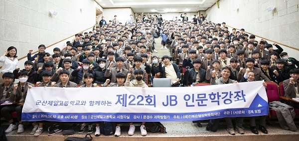 (재)전북은행장학문화재단(이사장 김영구)은 지난 10일 군산제일고등학교에서 국내 1호 과학탐험가인 문경수 탐험가를 초청, 1, 2학년 300여 명을 대상으로 제22회 ‘2019 JB인문학 강좌’를 열었다.