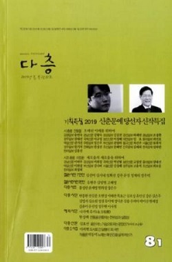 계간문예 ‘다층’이 2019년 봄·통권 81호 기획특집을 통해 ‘2019 신춘문예’를 통해 등단한 시인 21명의 새 작품을 엮었다.