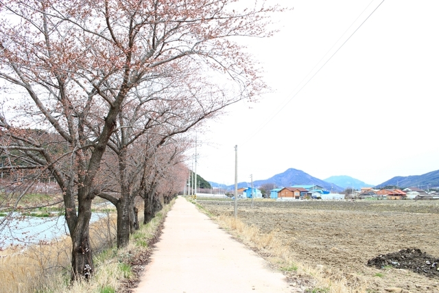 이곳에서 시간을 보냈다고 문제 될 것은 없습니다. 길을 걷는다는 것은 도착 지점만을 목표로 하는 것이 아니라 가는 과정이 더 가치가 있기 때문입니다. 서림공원을 출발해서 람천 제방을 따라갑니다. 벚나무 꽃길입니다. 벚꽃이 활짝 피려면 일주일 이상 더 지나야 할 것 같네요.