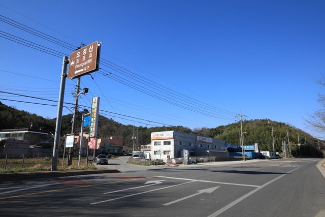 군장대학교 입구에서 오성산 정상까지는 약 2km로 자동차로는 5분이면 오를 수 있지만, 걸어간다면 40분 정도 소요되는데요, 자전거 동호인들도 즐겨 찾는 길로 길이 좁고 구비 진 길이 많아 교행 시 주의가 필요하며 경적은 금물입니다.