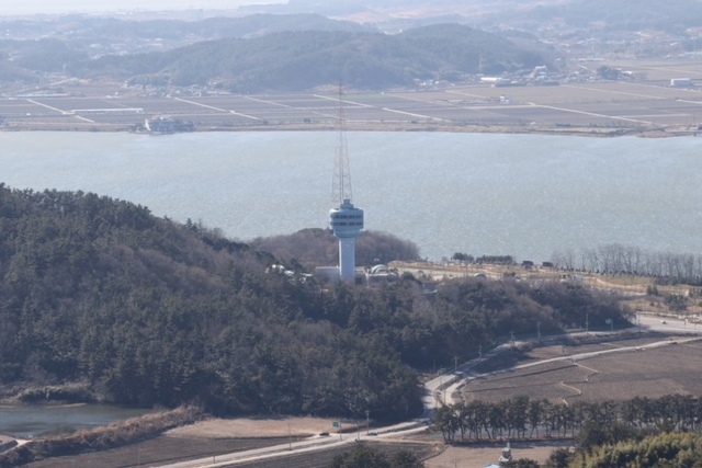 전망대에서 군산의 아름다운 풍경을 바라봅니다.