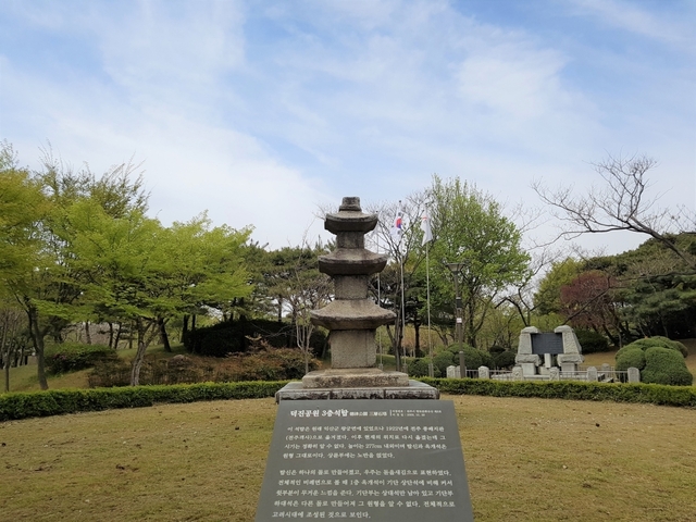 애국지사를 위한 동상, 유구한 역사를 갖고 있는 3층 석탑도 볼 수 있습니다. 단순히 걸을 수 있는 공간이 아니라, 여러 조형물을 보며 역사 회고도 가능해요.