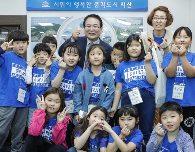 익산시는 23일 오산초교 3·4학년 학생 23명을 익산시청으로 초청해 공무원 진로체험 행사를 실시했다.