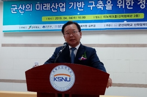 김부겸 국회의원(전 행안부 장관)은 24일 군산대 산학협력관 이노테크홀에서 열린 ‘군산의 미래산업 기반 구축을 위한 정책토론회’에서 “한강의 기적을 만들었던 자동차·조선 등의 분야에서 패스트 팔로우 (Fast Follower) 전략은 더 이상 유효하지 않는다”며 “조선 등 전통제조업이 강한 군산도 새로운 산업혁명의 물결 속에서 변화를 찾아야 한다”고 말했다.