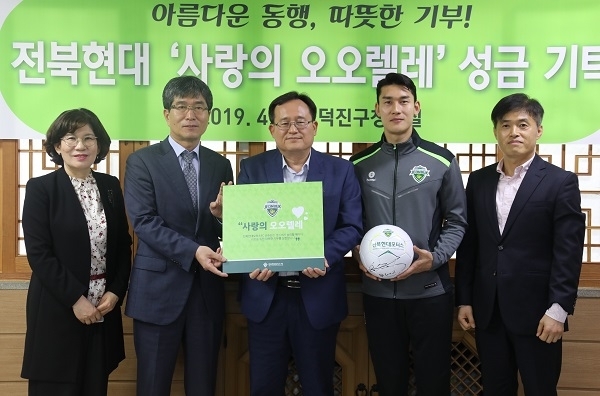 전북현대는 25일 오후 전주월드컵경기장 소재지인 전주 덕진구청을 방문해 ‘사랑의 오오렐레’ 성금을 기탁했다.
