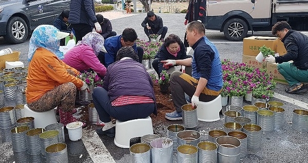 주민들은 재활용 선별장에서 분유깡통 등을 직접 수집해 세척, 페인트칠하고 꽃을 직접 심어 시내 권 상가 주변에 비치하거나 화분걸이를 이용해 벽에도 걸어 주는 사업을 진행(화분 250개)하고 있다.
