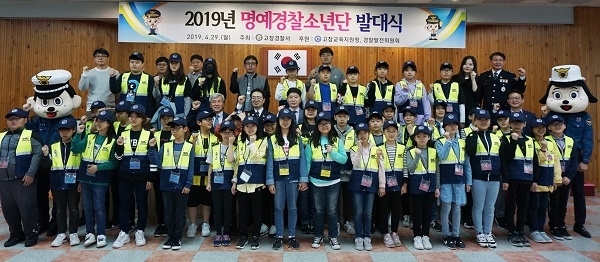 고창경찰서(서장 박정환)는 지난달 29일 학교폭력 예방 활동에 관심이 높은 학생을 대상으로 한 명예 경찰 소년단 발대식을 가졌다.