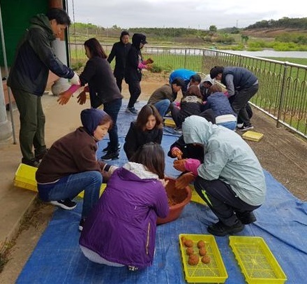 이날 교직원들은 EM흙을 이용해 공을 만들어 마을주변 하천이나 저수지에 흙공을 던져 환경정화를 실시하며 청정 프로젝트 재능나눔을 실천했다.