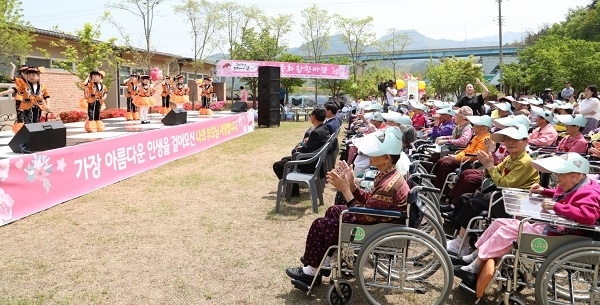 지난 4일 요양원 내 평화의 숲에서 진행된 행사에는 황인홍 군수와 유송열 군의회 의장을 비롯한 입소 어르신들과 보호자, 시설종사자. 자원봉사자 등 200여 명이 함께 했다.