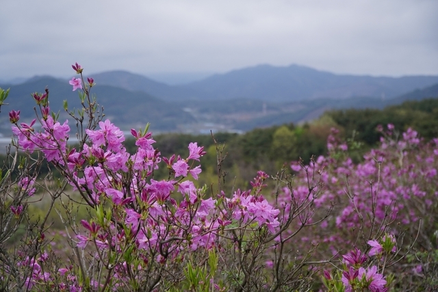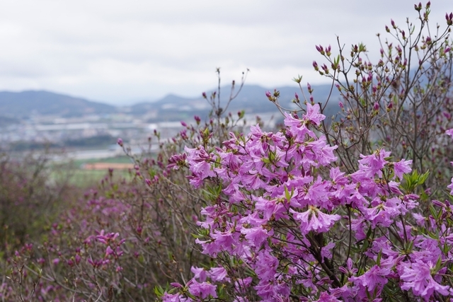 좀 더 올라가면 만개한 철쭉들이 보이기 시작합니다. 제가 방문한 4월 말은 철쭉제의 시작이라 아직 철쭉이 100% 만개하지는 않았지만 진홍색의 풍경을 전달하기에는 큰 부족함이 없었습니다.