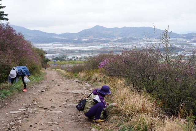 올라가는 와중에 철쭉제를 관람하러 온 분들도 만날 수 있었습니다. 철쭉과 바래봉의 풍경을 보면서 쑥도 캐고 담소도 나누시는 모습에서 왠지 알 수 없는 힐링이 느껴지는 기분이었습니다.