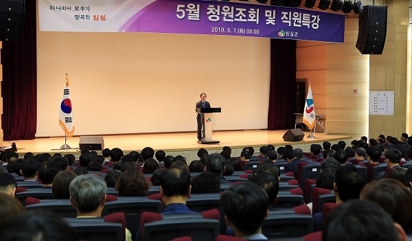 심민 임실군수는 7일, 5월 청원 월례조회에서 “지역민을 먼저 생각하는 민생 중심의 행정에 앞장서 달라”고 강조했다.