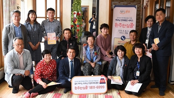 이날 개통된 ‘완주 안심콜(전화 1811-6999)’ 서비스는 타 지역에 사는 자녀가 사전에 부모님 안부 확인을 신청하면 완주군에서 홀로 생활하는 부모님과 연락이 두절될 경우에도 지역 활동가 등이 가정을 방문해 안부를 대신 확인해 주는 적극적인 서비스이다.