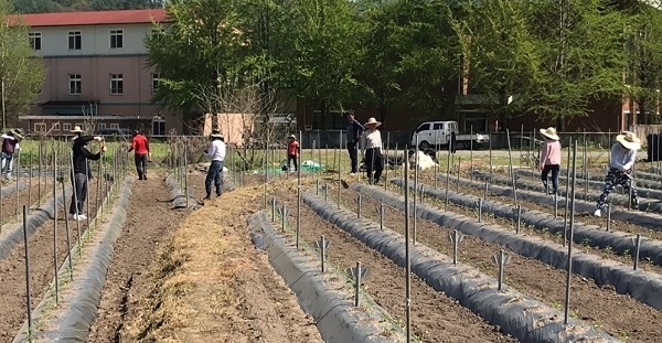 10일 완주군 농업기술센터 기술보급과 직원들은 영농철 일손 부족으로 어려움을 겪고 있는 화산면의 한 농가를 찾아 고추 지지대 작업(4500㎡)을 도왔다.