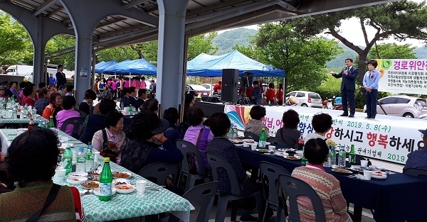 완주군 구이면(면장 오인석)은 5월 가정의 달을 맞아 최근 구이면사무소 주차장에서 관내 소외 어르신 500여명을 모시고 사랑의 경로위안 잔치를 열었다. 사랑의 경로위안잔치는 구이면 사회단체가 주관, 매년 개최하고 있다.