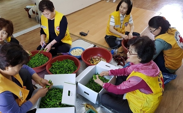이날 봉사에 참여한 강천적십자봉사회(회장 소명자) 회원 10여명은 자원봉사자의 집 빨래방에서 손수 다듬고 만든 열무김치와 꽈리고추멸치볶음, 미역줄기 반찬 3종류를 20세대에 전달했다.