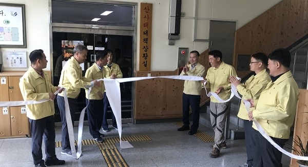 상황실은 이날부터 오는 10월15일까지 운영한다. 여름철 자연재해에 효율적이고 신속하게 대처하기 위해서다. 수 있도록 15일 ‘산사태대책 상황실’ 현판식을 가졌다.