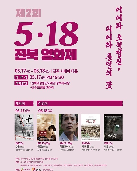 제39주년 5·18 민중항쟁 전북행사위원회가 주최하고 5·18 전북영화제 조직위원회와 전라북도 민주동문협의회가 주관한 ‘제2회 5·18 전북영화제’에서는 민중의 저항정신과 항쟁의 역사를 다룬 영화 5편을 상영한다.