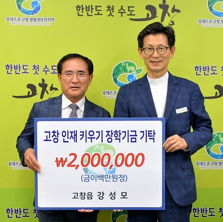 강성모 씨는 “고창군이 추진하고 있는 지역 인재 양성에 동참하기 위해 장학금을 기탁하게 됐다”며 “고창군 교육발전이라는 큰 행복을 함께 할 수 있어서 기쁘다”고 밝혔다.