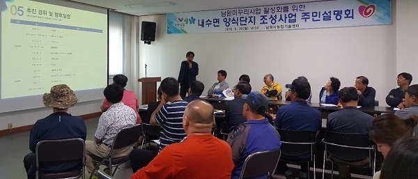 남원시농업기술센터는 최근 남원시 내수면 양식단지 조성사업 기본계획 주민설명회를 가졌다고 22일 밝혔다.