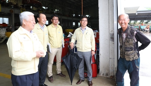 오전 8시 주간 업무보고회로 시작된 오전 일과는 현장결재와 사업장 점검 등으로 이어졌다.
