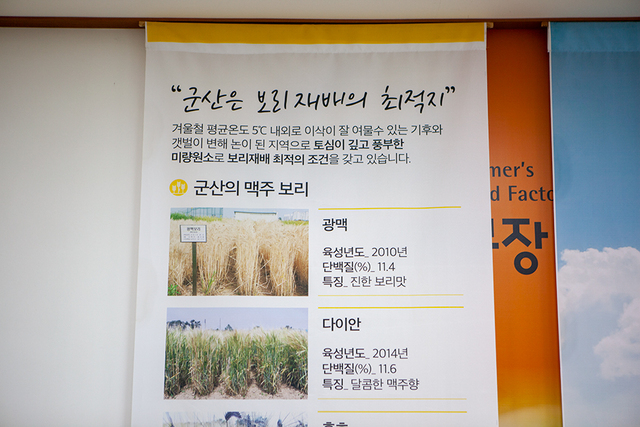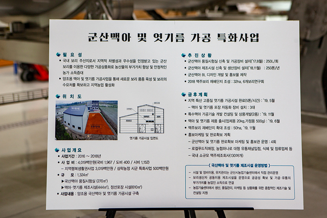 그뿐만 아니라 이번에 신축된 군산 농산물 가공지원센터의 군산 맥아 가공 특화사업 시설에서 식혜, 조청, 장류를 만들 때 사용되는 엿기름도 함께 생산하고 있습니다.