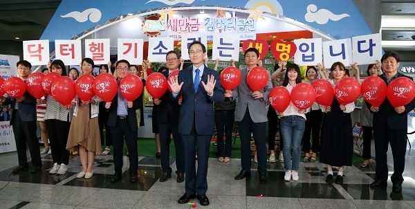송하진 전북도지사가 27일 ‘닥터헬기 소리는 생명입니다(소생)’ 캠페인에 동참했다.