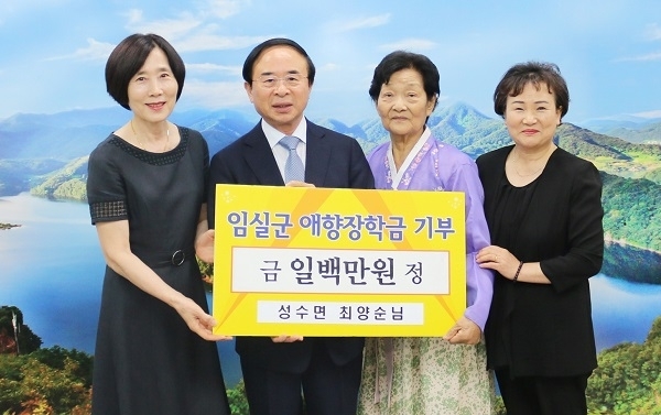 성수면 생활개선회 초대 회장을 지낸 최양순 씨는 29일 장학회 이사장인 심민 군수를 방문하고 100만원의 장학금을 기탁했다.