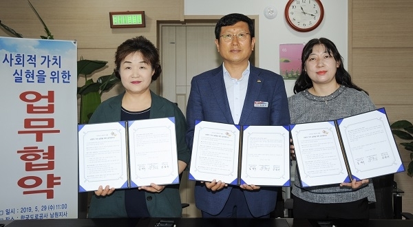 남원시 자원봉사센터는 29일 한국도로공사 남원지사, 남원기초푸드뱅크와 업무협약을 체결하고 지역 약자 보호를 위해 협력하기로 했다.