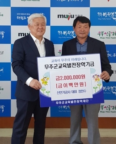 무주군 안성면에 소재한 신안기공사 정천수 대표가 지난달 31일 무주군장학재단에 장학금 200만 원을 기탁했다.