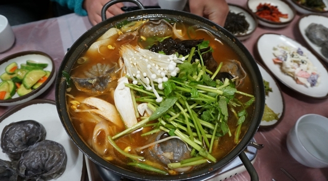 검정콩 두부전골과 검정콩 왕만두를 맛보았습니다. 검정콩은 혈액순환을 촉진하며 해독작용이 뛰어나 혈관을 튼튼하게 해줘서 고혈압과 동맥경화에도 좋다고 합니다.