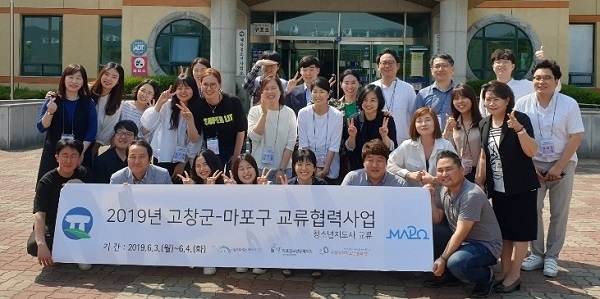 군은 지난 3~4일 서울 마포구와 교류협력 사업의 일환으로 ‘양 지역 청소년 지도자 우호 다지기 행사’를 고창 일원에서 가졌다. 마포구 소속 마포·도화·망원 3곳의 청소년 문화의집 지도자 20여 명과 고창군의 수련관, 흥덕·성내 문화의 집, 고창청소년문화센터 등 총 40여 명의 청소년기관 지도자들이 함께했다.