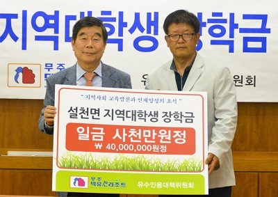 장학금은 설천면 내 저소득 가구 대학생 40명(1인당 100만원)에게 전달될 예정이다.
