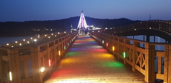 군산시가 은파호수공원 물빛다리를 야간경관 LED조명으로 새 단장했다.