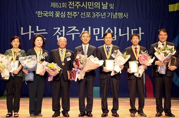 또 전주시의 명예와 자긍심을 드높이고 지역사회 발전에 헌신한 시민들에게 주어지는 전주시민의 장 수상자 6명과 모범시민상 5명에 대한 시상도 진행됐다.