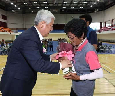 무주군 이장협의회(회장 이우석, 부녀회장 이순희)가 주최·주관한 가운데 18일 무주국민체육센터에서 열린 이장 한마음 체육대회에는 6개 읍·면 이장, 부녀회장을 비롯해 황인홍 군수와 유송열 군의회 의장, 황의탁 도의원 등 300여 명이 함께 했다.
