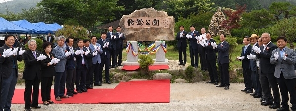 비봉공원의 역사를 기리고, 후손에게 그 역사성을 알려주기 위해 건립한 표지석 제막식이 18일 박성일 완주군수, 최등원 완주군의회 의장 등 내빈과 마을주민 등 200여명이 참석한 가운데 열렸다.