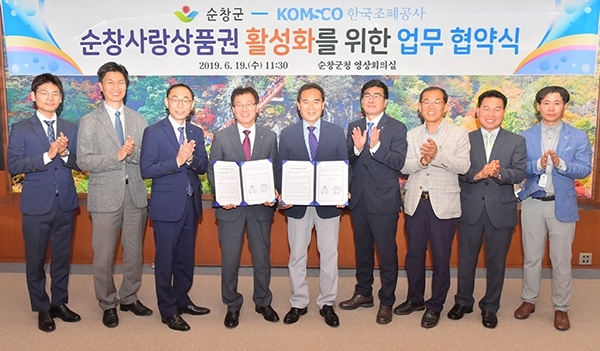 순창군이 19일 군청 2층 영상회의실에서 순창사랑상품권 발행(8월 1일)을 앞두고 상품권 발행과 활성화를 위해 한국조폐공사와 업무협약식을 가졌다.