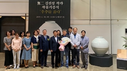 지난 4월 누에아트홀에서 ‘김진성 우주를 품다’ 기획전을 개최한 바 있는 김진성 작가는 현재 대둔산 미술관 대표로 활동하고 있으며, 이번에 기증한 작품 ‘큰달1’은 지름 1m에 이르는 대형 백색 도자기다.