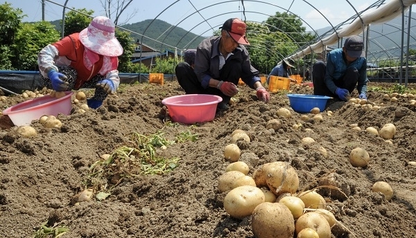 남원시 운봉읍에서 춘향씨감자를 재배하는 신동열씨는 지난 21일 씨감자 3000kg을 수확해 지역 시설 감자농가에 공급하고 있다.