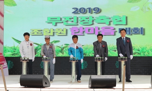 창립 41주년을 맞은 무진장축협(조합장 송제근)이 지난 20일 ‘2019 조합원 한마음대회’를 열었다. 장수군 의암공원 특설무대에서 무주·진안·장수 조합원 1500여명과 내빈 250명가량이 참석한 가운데 열린 이날 행사에는 김태환 농협중앙회 축산경제대표이사, 황인홍 무주군수, 장영수 장수군수, 유재도 농협전북지역본부장, 신갑수·김종문·유송열 진안·장수·무주군의회의장, 박용근·이한기·황의탁 도의원, 무진장 관내 기관·단체장 등이 자리를 함께했다.