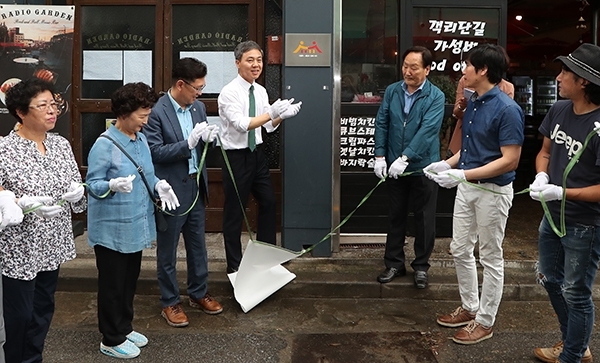 시는 이날 상생협약 참여건물에 건물주의 자긍심을 높이고, 젠트리피케이션 방지에 대한 시민공감대 확산을 위해 젠트리피케이션 방지 BI 현판도 부착했다.