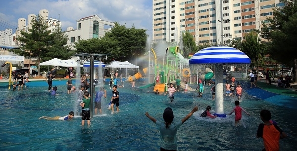 물방개 워터파크는 3개월 동안 오전 10시30분~오후 6시30분까지 운영한다. 주요시설로 워터버킷, 워터슬라이드, 조합물놀이대, 우산조형분수 등이 있다. 지난해 첫 개장해 1만4000여 명이 이용했다. 이용료는 무료다.