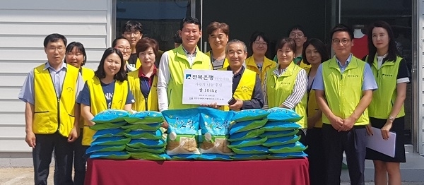 전북은행 진안지점(지점장 이순국)이 어려운 이웃에 써달라며 진안군사회복지협의회(회장 송상모, 이하 진사협)에 지난 28일 ‘사랑의 쌀’을 전달했다. 이날 전달된 사랑의 쌀은 164kg이다. 진사협은 이 쌀을 마이푸드마켓 이용대상자 가정에 고르게 배부할 예정이다.